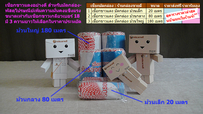 เชือกขาวแดงอย่างดี สำหรับใช้ผูกสิ่งของ และมัดกล่องพัสดุไปรษณีย์เพิ่มความแข็งแรง